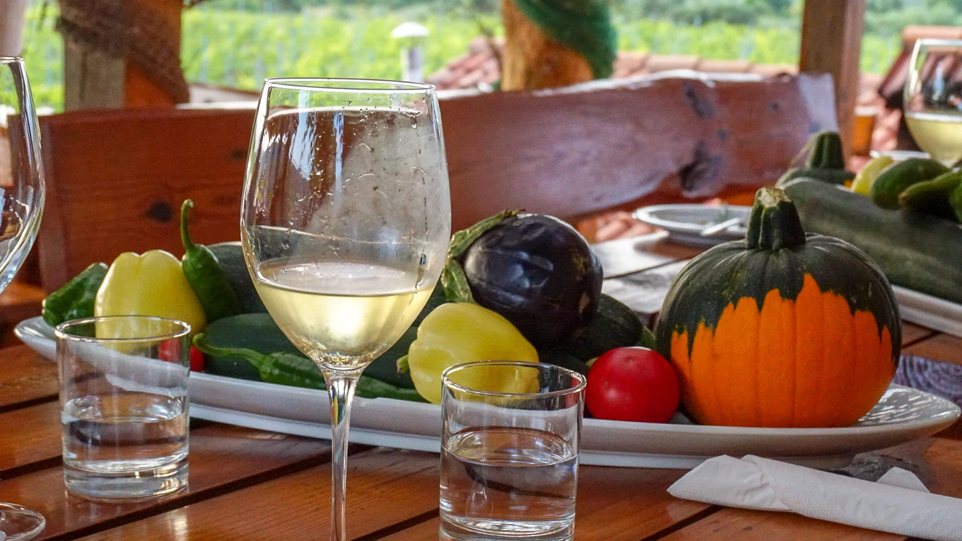 When we got there we were met by Ana who was our hostess for the evening. She welcomed us to the wine farm and told us the history of the farm which was incredible. The Greeks had settled here in the 4th Century BC and they divided the land into 73 equal plots and they were given to the families to till the land and provide foods for themselves. And 2400 years later this same land is being used to produce everything that is produced in this farm. Everything is grown organically - the proper kind of food as Ana called (she used another term for the food that we've been eating) and being in that place after knowing that it's a UNESCO World Heritage site it truly humbled me.